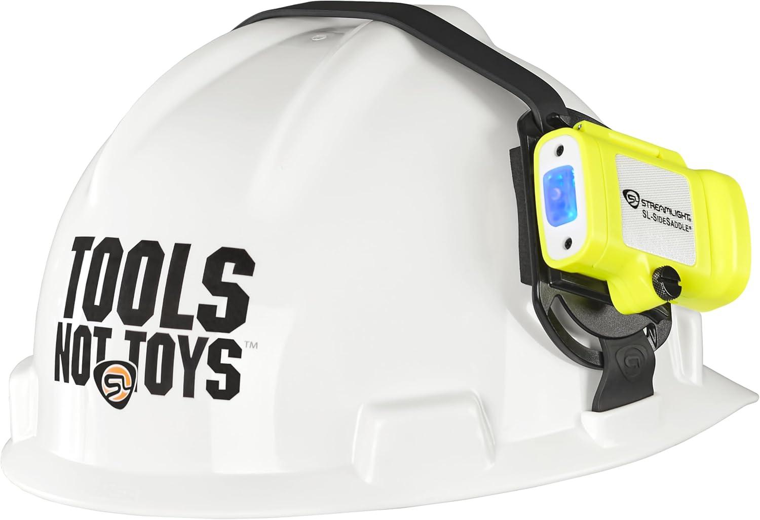 Streamlight 61630 SL-Sidesaddle 250-Lumen Hands-Free Universal Hard Hat, Helmet, and Headgear LED Light with Mount Kit and (3) x AAA Alkaline Batteries, Yellow
