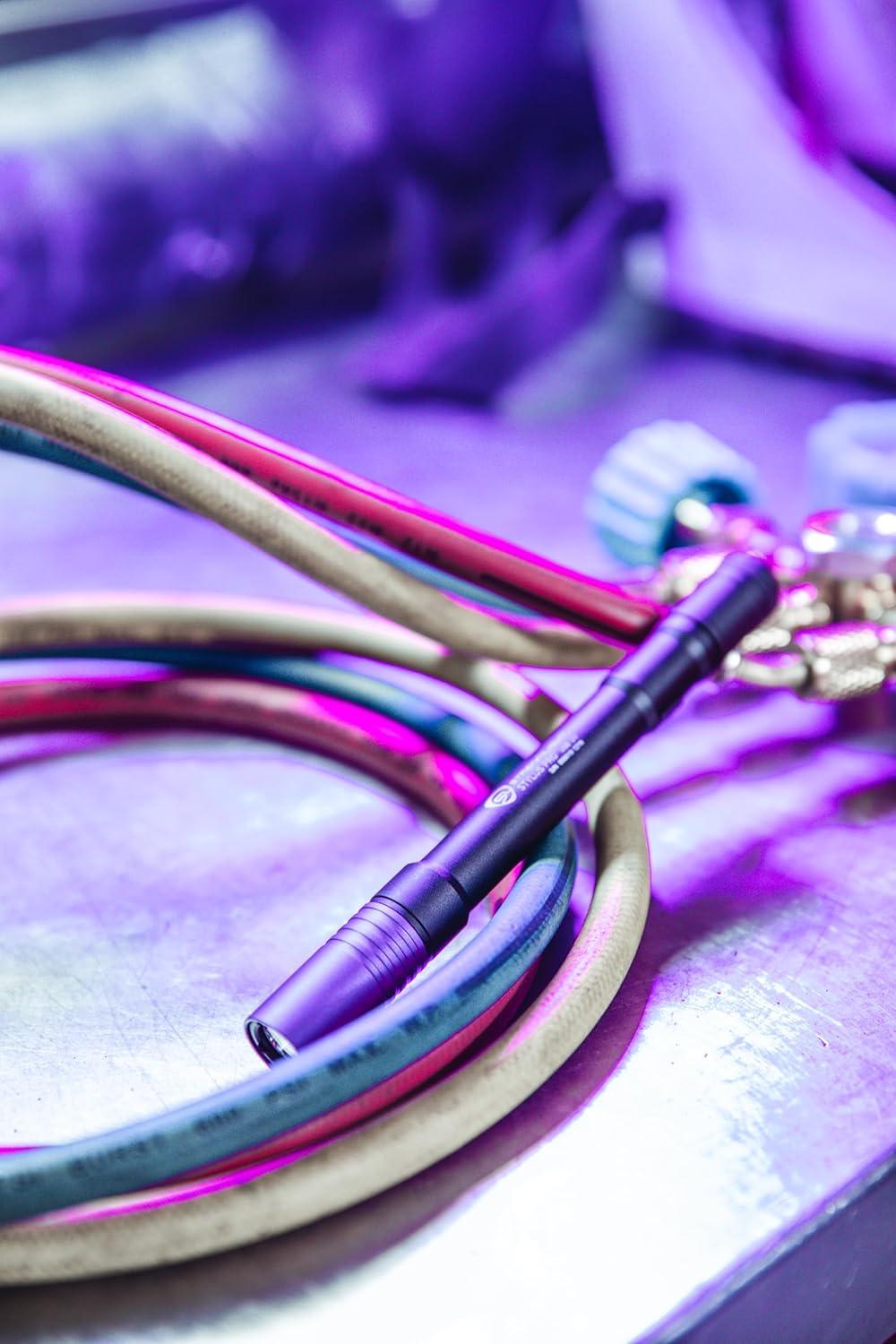 A sleek, compact, USB rechargeable penlight with an ultraviolet LED for detection of engine or HVAC leaks, detecting fraudulent documents, or for forensic investigations. Allows you the flexibility of charging on-the-go using the included USB cord or optional AC wall adapter.