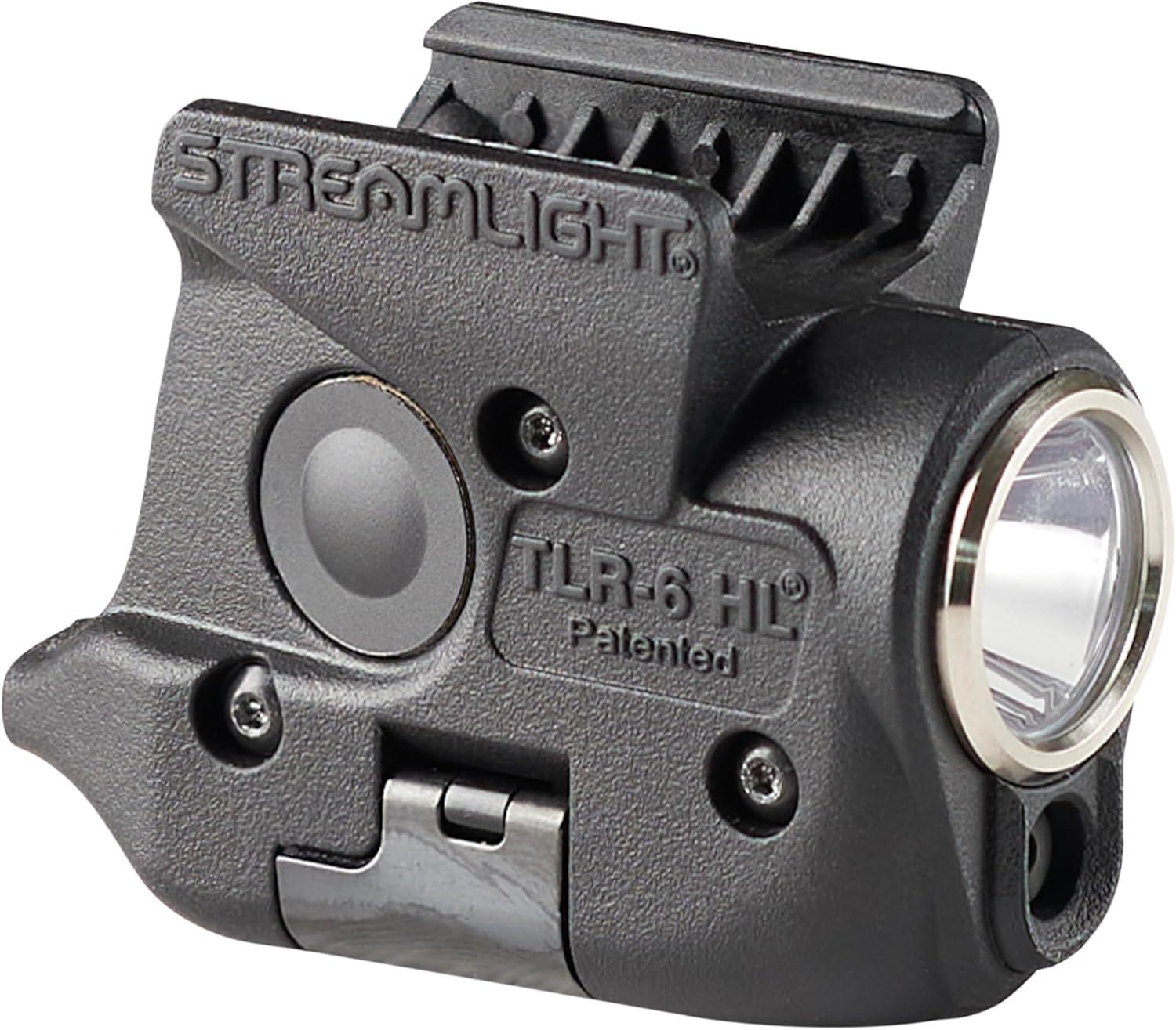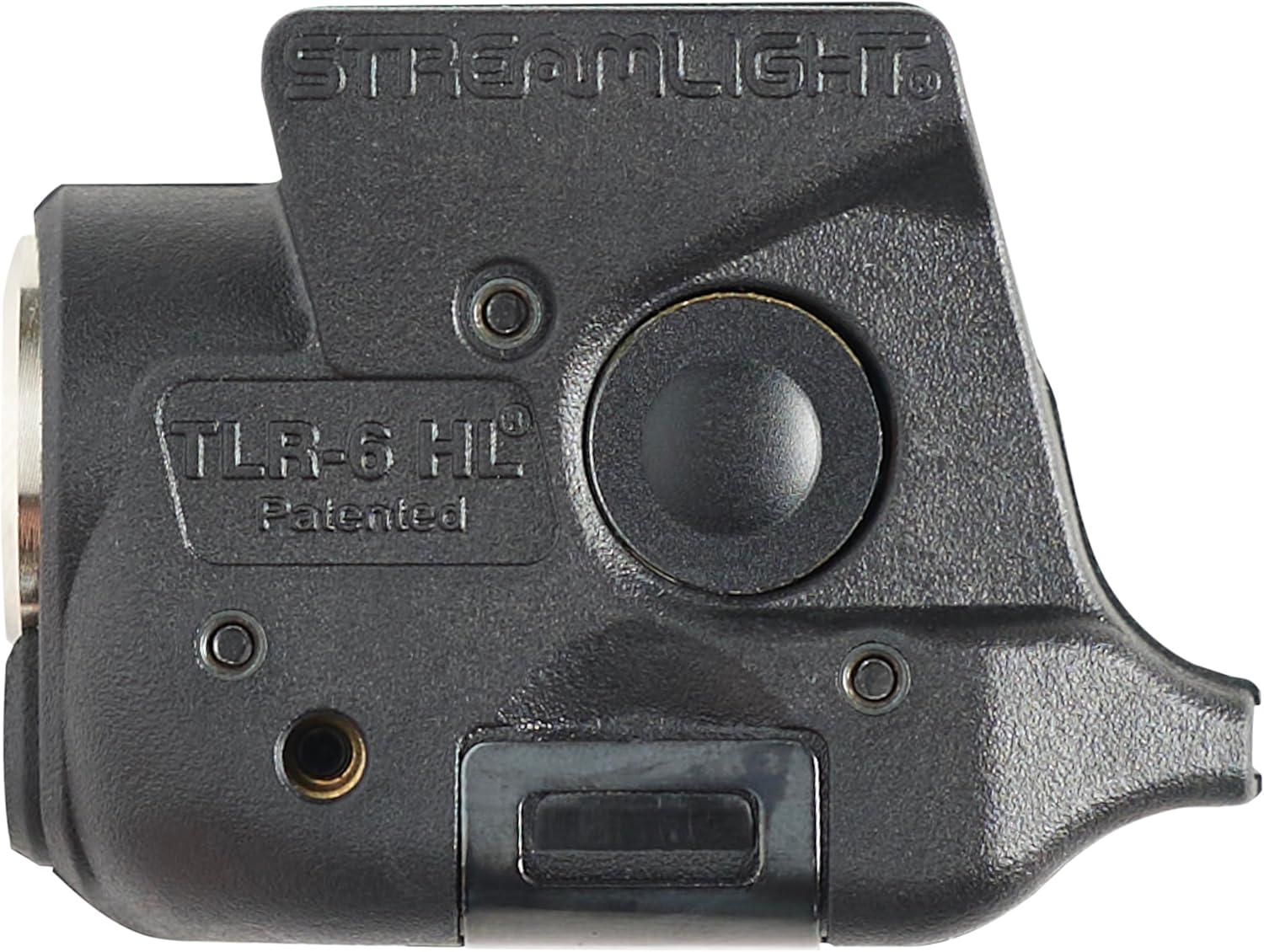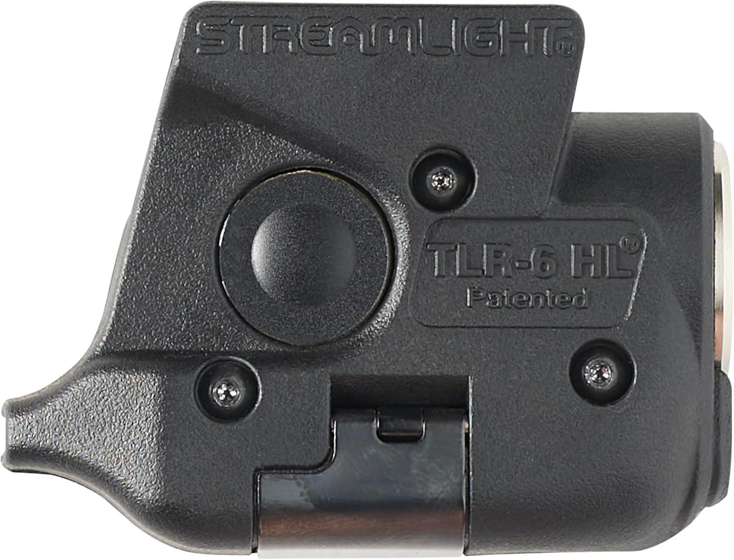 The ultra-compact TLR-6 HLG weapon light with high-power LED and integrated green aiming laser features tool-less rechargeable battery replacement without removal from the weapon or the need to re-sight the laser. Designed to securely attach to the rail and trigger guard of select subcompact handguns.