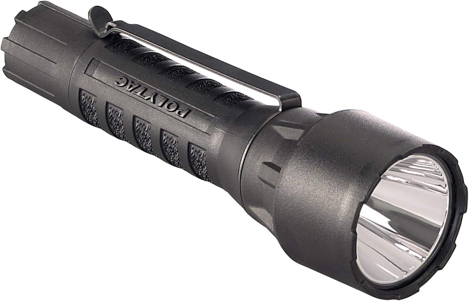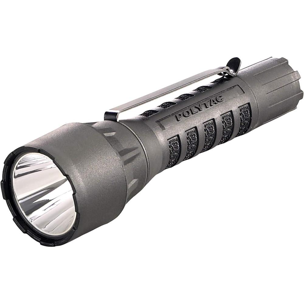 The Streamlight polytac LED HP offers a C4 LED 2-3X brighter than high Flux LED 15,000 candela peak beam intensity, 150-Lumen. All this in a virtually indestructible nylon polymer frame. Features solid state power regulation that provides maximum light output throughout battery life. Tail cap push button provides one-handed momentary or constant “on” operation. PX7 rated design, waterproof to 1 meter for 30 minutes, Runs 3 hours to the 10 Percent output level