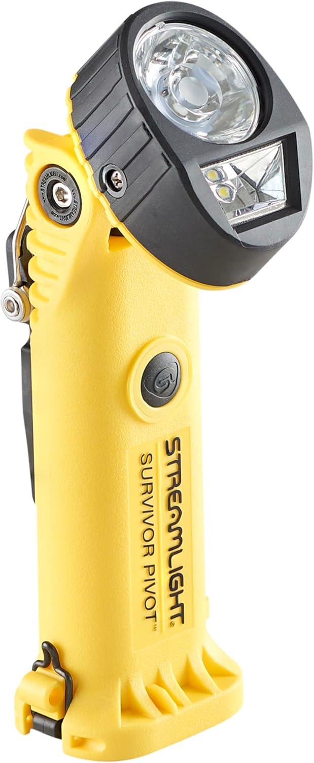 Streamlight 91810 Survivor Pivot 325-Lumen Right Angle Articulating Dual Beam Flashlight with Alkaline Batteries and Clip, Yellow